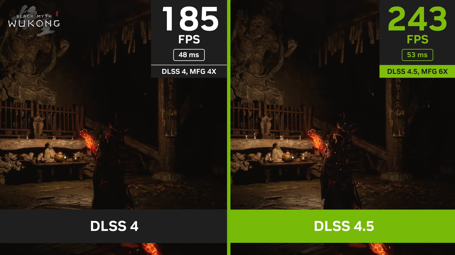 Um dos principais destaques foi a chegada do DLSS 4.5, que agora passa a utilizar um modelo Transformer de segunda geração para a Super-Resolução. Diferente da versão anterior, esse novo modelo foi treinado com dados em movimento, e não apenas com imagens estáticas. Esse avanço exigiu um esforço computacional significativamente maior— cerca de cinco vezes mais processamento durante o treinamento.